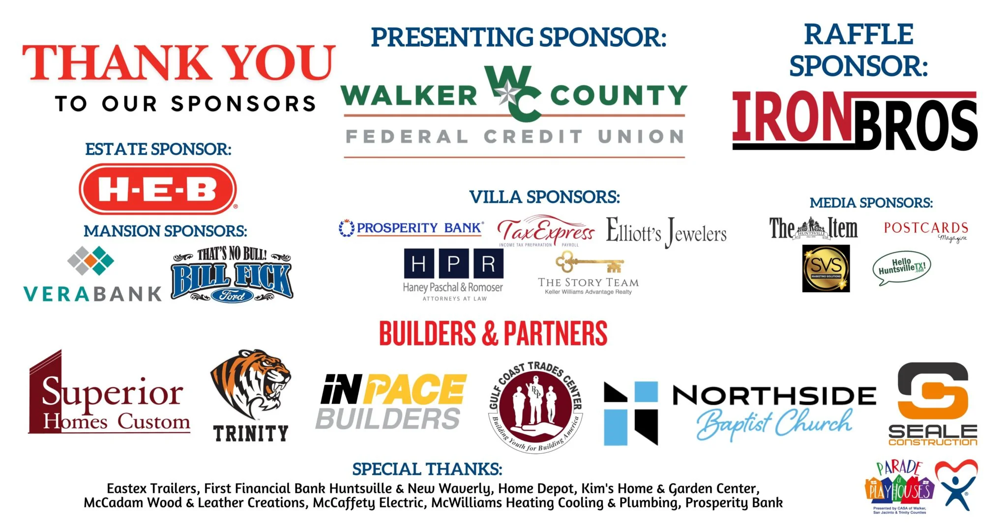 The playhouses will be displayed at banks, businesses and partner locations in Huntsville, New Waverly and Trinity. All six will appear together in the Huntsville Lions Club Christmas Parade on Dec. 6.