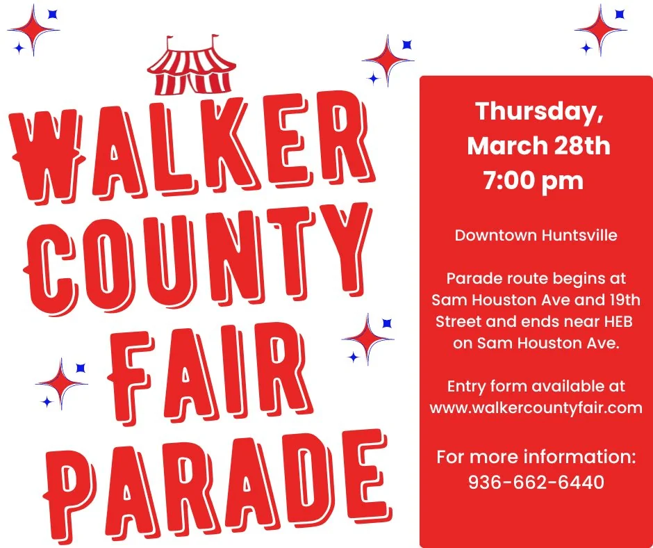 The festivities are set to commence with the Walker County Fair Parade on Thursday, March 28th at 7:00 pm. The parade route begins in downtown Huntsville at Sam Houston Avenue and 19th Street, near HEB, and ends near HEB on Sam Houston Avenue, offering an engaging display of floats and local groups to the community.