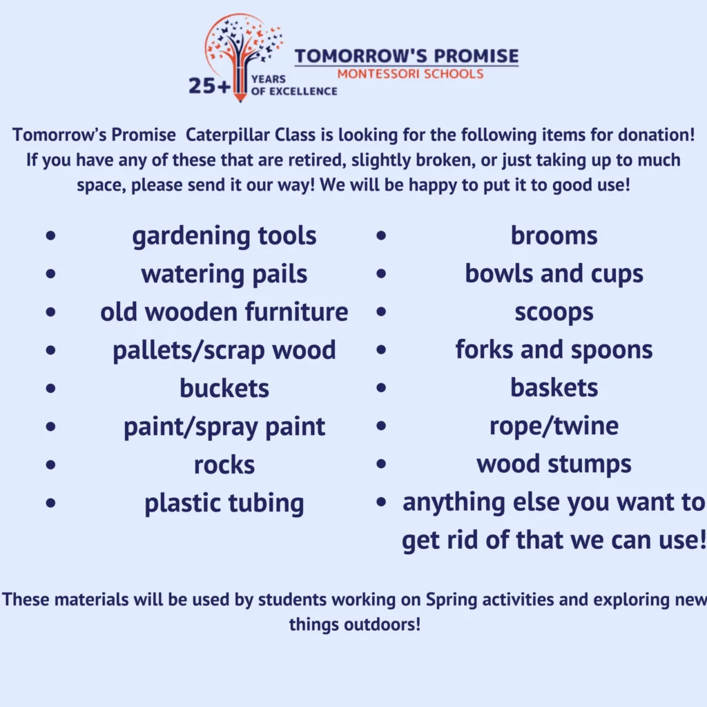 Huntsville, TX — Tomorrow's Promise Montessori Schools, a distinguished educational institution with a 25-plus-year legacy in the Huntsville community, is seeking community support to enhance its Gardening Project program. The school’s Caterpillar Class has issued a public request for donations of various items ranging from gardening tools to old wooden furniture, in a bid to bolster their Spring activities and foster new outdoor learning experiences for their students.