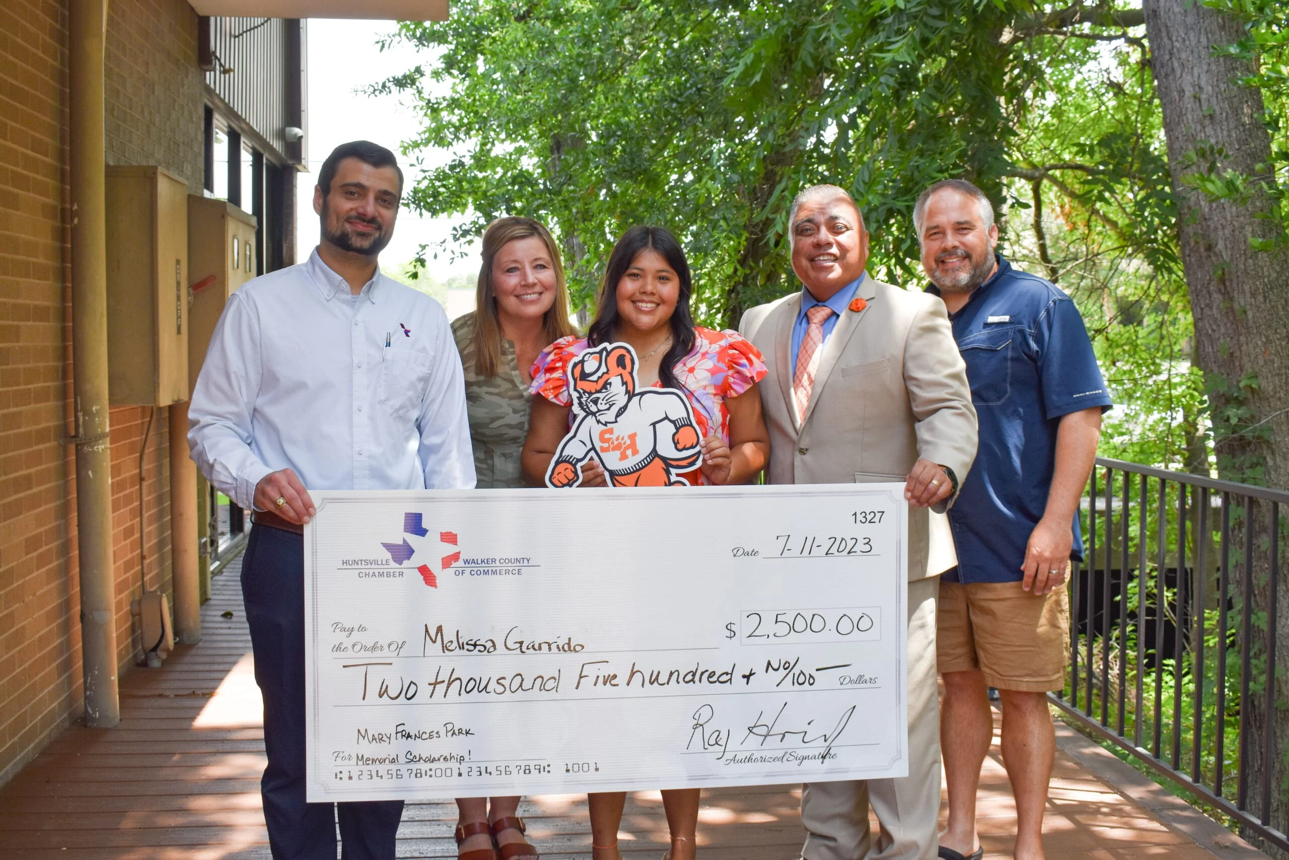 This past week, the Huntsville Walker County Chamber of Commerce recognized the recipients of the Mary Frances Park Memorial Scholarship. This highly competitive scholarship was awarded to four accomplished Huntsville High School seniors: Melissa Garrido, Elijah McMichael, Dalila Quinteros, and Daniel Ascencio.
