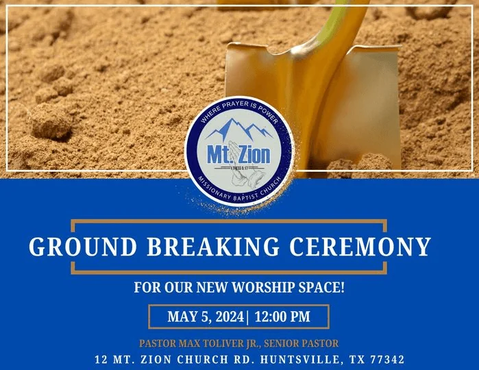 HUNTSVILLE, Texas – After nearly a century and a half of serving its community, Mt. Zion Missionary Baptist Church is poised for a significant transformation with the groundbreaking of its new sanctuary expansion slated for Sunday, May 5, 2024. This event marks a new era for the church, reflecting both its rich history and its future aspirations.