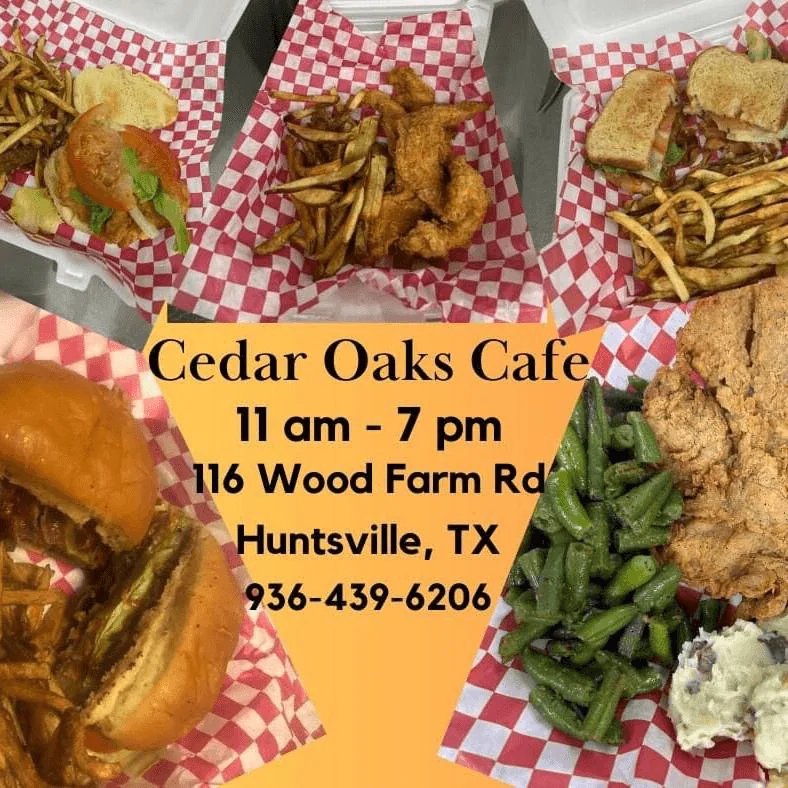 Located at 116 Wood Farm Rd., Cedar Oaks Cafe is open to all. For more information, call (936) 439-6206, email cedaroaksrvcamp@yahoo.com, or visit cedaroaksrvcamp.com. Stay connected on Facebook at Cedar Oaks Cafe.