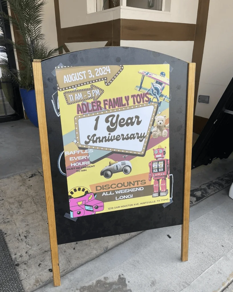HUNTSVILLE, Texas — Adler Family Toys, a beloved local toy store in Huntsville, celebrated its one-year anniversary on August 5. The celebration, held on August 3, brought together families from across the community to mark the store's first year of operation. Owned and operated by Shane and Madelyn Adler, the store has quickly become a go-to destination for parents and children alike.