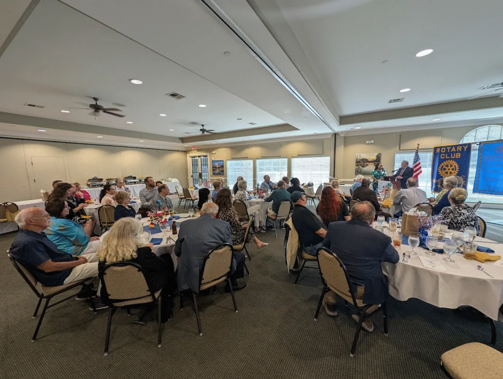 HUNTSVILLE, Texas — The Huntsville Rotary Club ushered in new leadership on the evening of Wednesday, June 25, as Walker County Precinct 3 Commissioner Bill Daugette was formally installed as club president for the 2025–2026 year. The installation took place at the Elkins Lake Clubhouse before a full crowd of Rotarians, community partners, and family members. The evening was a celebration of service, legacy, and future vision for one of Huntsville’s longest-standing civic institutions.