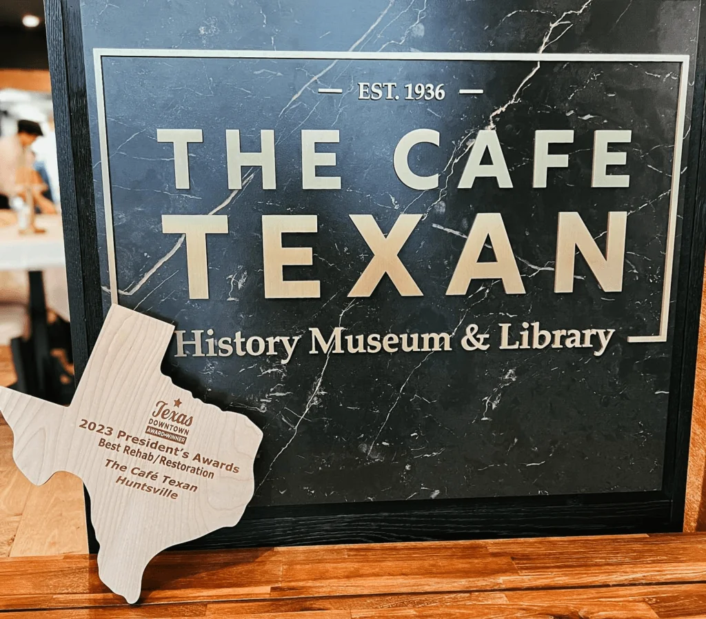 HUNTSVILLE, Texas — Last month, at the prestigious Texas Downtown President's Awards Gala held in Nacogdoches, the Café Texan History Museum & Library was awarded the honor of the Best Rehabilitation/Restoration for 2023 by the Texas Downtown Association.