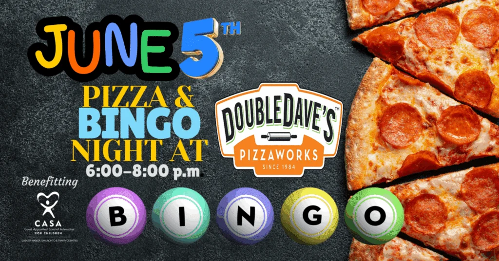 The community favorite blends hand-tossed pies with multiple bingo rounds and prizes. The first two bingo cards are free, and each additional card costs just $1. Proceeds benefit CASA’s mission to ensure every child in foster care has a safe, permanent home.