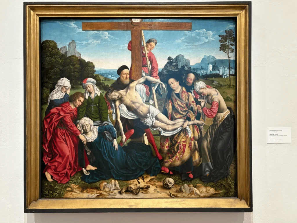 Gravitating towards the third floor of the museum, we split into groups to take on the two exhibits. Michelle, Israel, and I began our time strolling through the European and Asian art exhibits. The European side of the exhibit began with painting and artifacts from the Medieval time period. Immediately Michelle found, what happened to be her favorite from the exhibit, a piece by Joos Van Cleve titled Descent from the Cross.