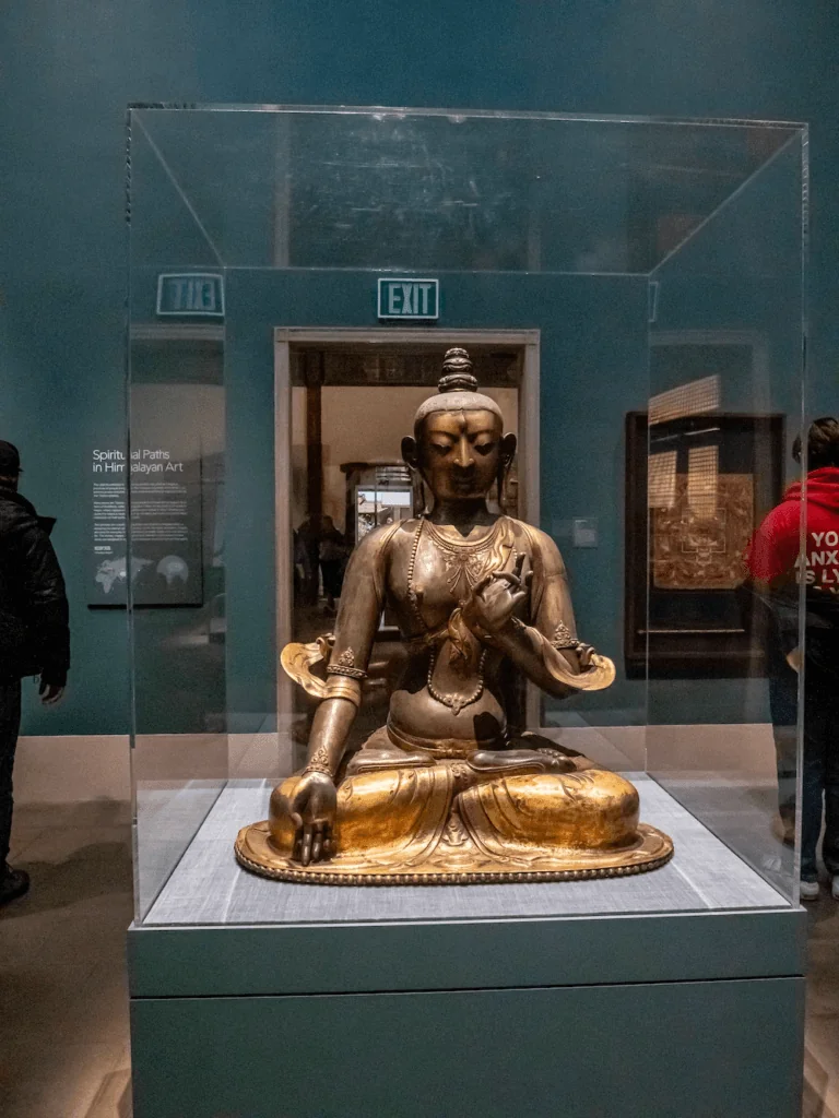 Passing through the European and Oriental artwork from Chinese, Japanese, and Korean artists, I approached a room filled with art best aligned with my heritage. The Southeast Asian collection contained a variety of “murti’s”, or idol sculptures often found in South Indian temples. From the columns with engravings of mythological characters depicted in Indian folklore stories, to the brass and golden murti’s, this surely became my favorite in the exhibit.