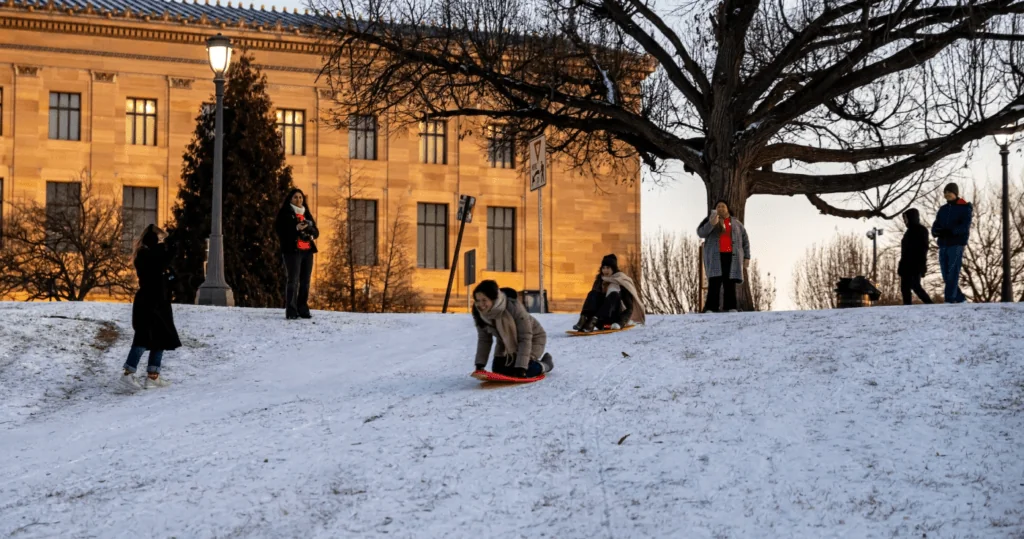 You would think that after 5 days in extremely cold weather that us Texans would immediately retreat indoors when presented the opportunity. However, we decided to hit the hills just outside the museum and go sledding!