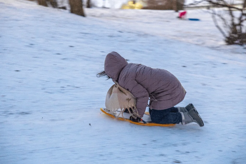 Saara and Israel, who had a bit of a competitive edge, decided to race down the hill. That was soon squashed by a handful of icy collisions.