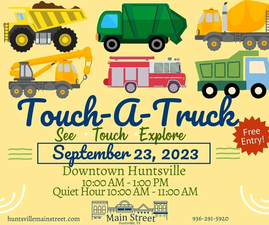 HUNTSVILLE, TX — The city of Huntsville is revving up excitement for families with its upcoming "Touch-a-Truck" event, aimed to engage children and the young at heart in interactive experiences with large vehicles. The event is scheduled for Saturday, September 23, 2023, in Downtown Huntsville, from 10:00 a.m. to 1:00 p.m., and admission is free.