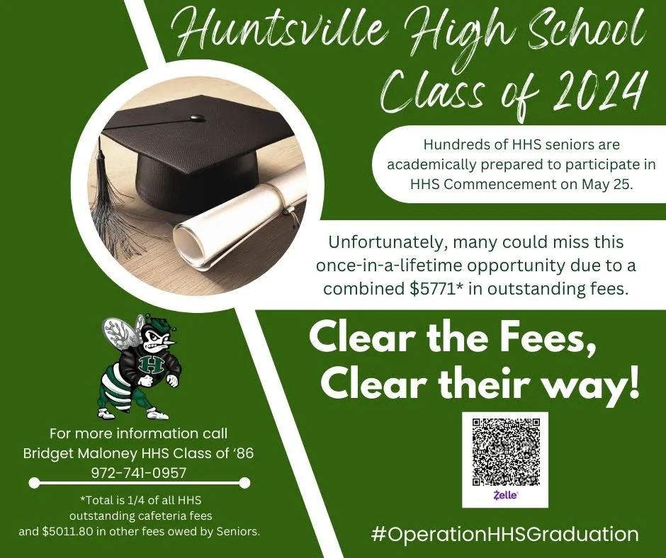For those who prefer traditional methods, checks can be addressed to "Huntsville High School" with "Operation HHS Graduation" noted in the memo line. Maloney has also offered to personally pick up donations to facilitate the process for those interested.
