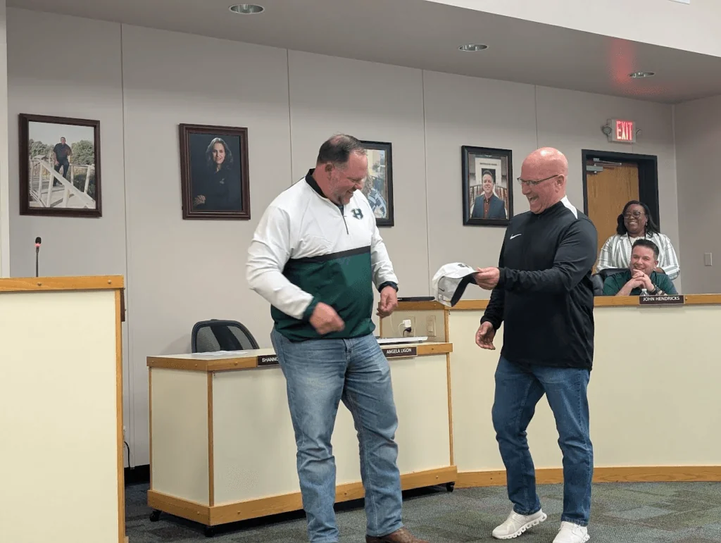 The board and community members gave Moebes a standing ovation, officially welcoming him to his new role. As part of the ceremony, outgoing coach Rodney Southern presented Moebes with a Hornet jersey and hat, symbolizing the transition in leadership.