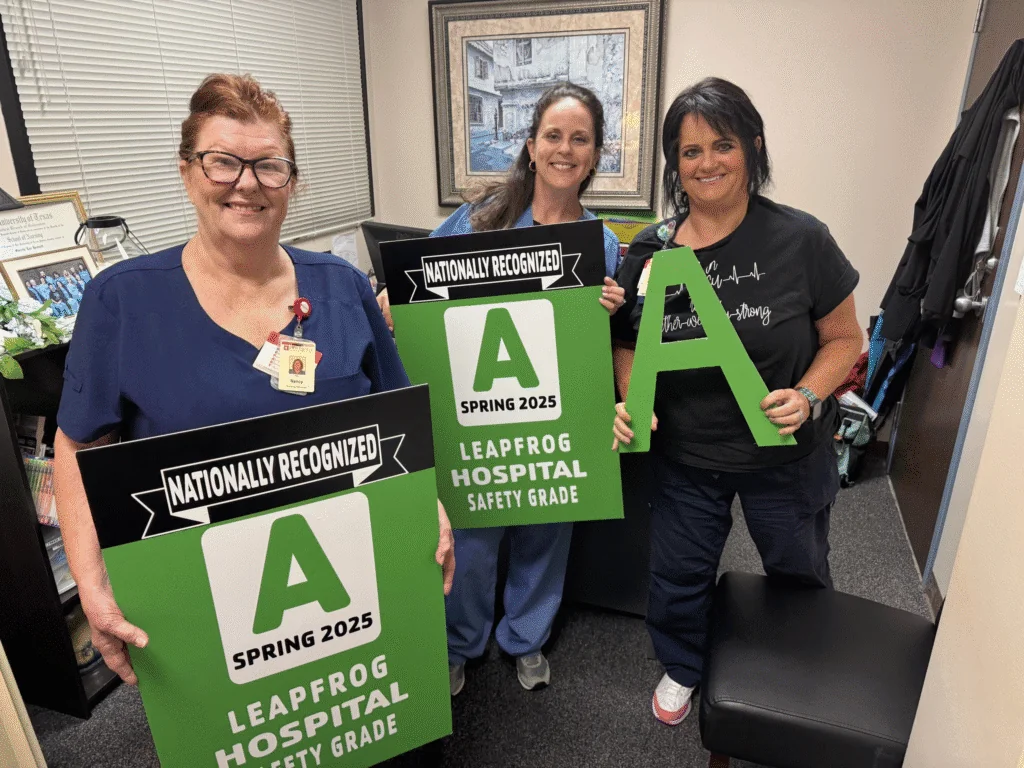 Huntsville, Texas, MAY 1, 2025 – Huntsville Memorial Hospital earned an “A” Hospital Safety Grade from The Leapfrog Group, an independent national nonprofit watchdog focused on patient safety. Leapfrog assigns an “A,” “B,” “C,” “D” or “F” grade to general hospitals across the country based on over 30 measures of errors, accidents, injuries and infections as well as the systems hospitals have in place to prevent them.