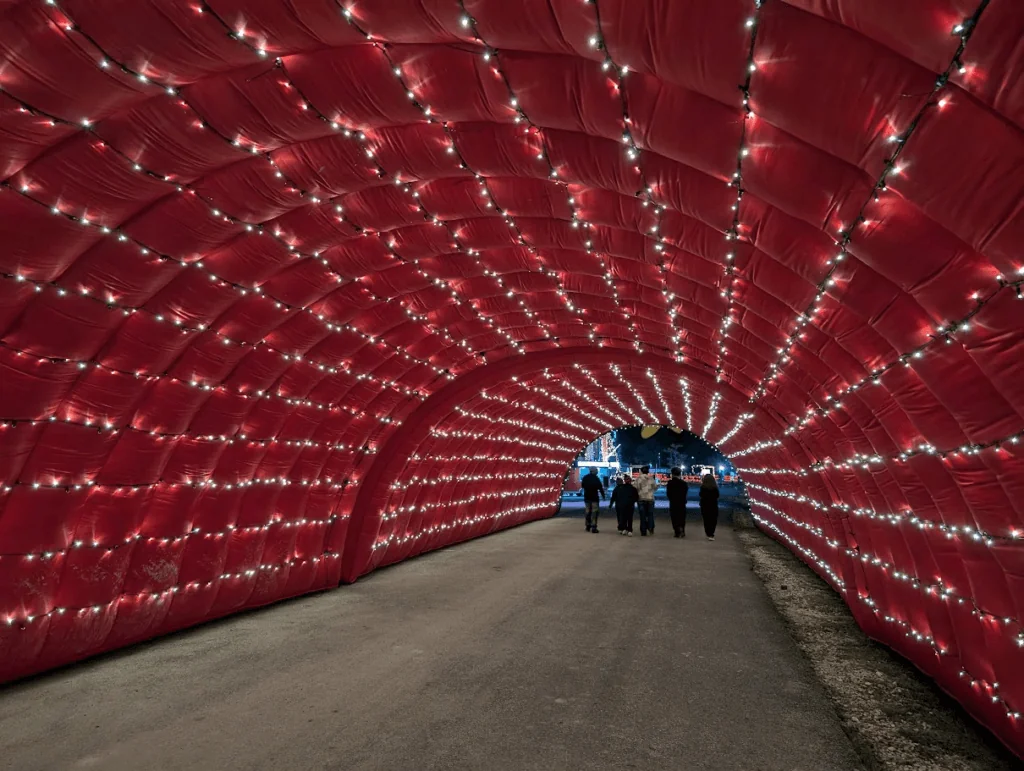 The moment we arrived, we were greeted by a massive light tunnel that felt like stepping into a Christmas fairytale. Walking through the tunnel was mesmerizing, and it set the tone for the night ahead. Once on the other side, the winter wonderland truly came to life. Everywhere you looked, there were lights, music, and festive decorations that made it impossible not to smile.